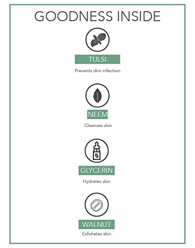 fabessentials Neem Tulsi Glycerin Bathing Bar | with Walnut Granules | for Cleansing Nourishing and Rejuvenating Skin | Vegan & Toxin Free - 100 gm