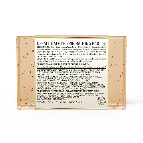 fabessentials Neem Tulsi Glycerin Bathing Bar is enriched with Neem extract Tulsi Extract and Glycerin