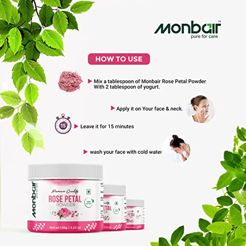 • ENRICHED WITH NATURE: Monbair Rose petal powder contains All Natural Ingredients with amazing skin-protecting properties.