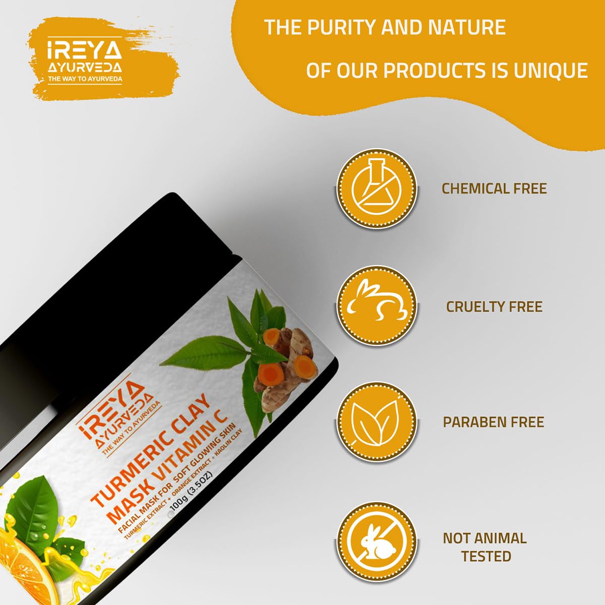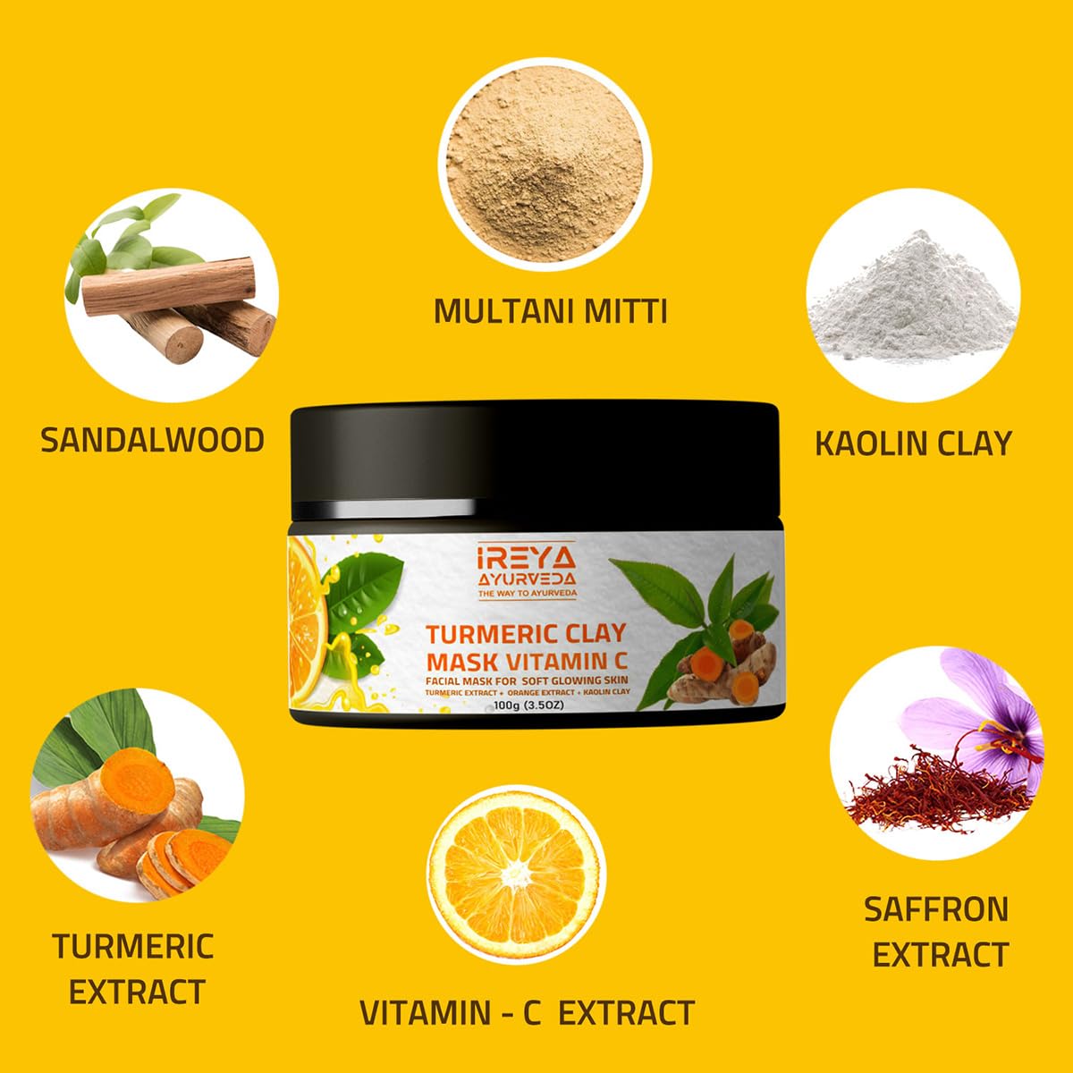 This turmeric vitamin C clay mask is a natural and effective way to cleanse and rejuvenate your skin. It is made with a blend of turmeric extract vitamin C orange and saffron extracts fuller's earth kaolin clay making it a powerful tool for achieving clear glowing skin. vitamin C helps to brighten and even out skin tone. The orange and saffron extracts also contain powerful antioxidants that help to protect skin from damage caused by free radicals. Fuller's earth is a natural clay that has a gentle yet effective exfoliating effect which helps to remove dead skin cells and unclog pores. Kaolin clay is a milder clay that helps to absorb excess oil and impurities while also providing a soothing and cooling effect on the skin. This turmeric vitamin C clay mask is easy to use and gentle on the skin. Simply apply a thin layer to clean dry skin and leave it on for 10-15 minutes before rinsing off with warm water. It is suitable for all skin types and can be used daily for optimal results.