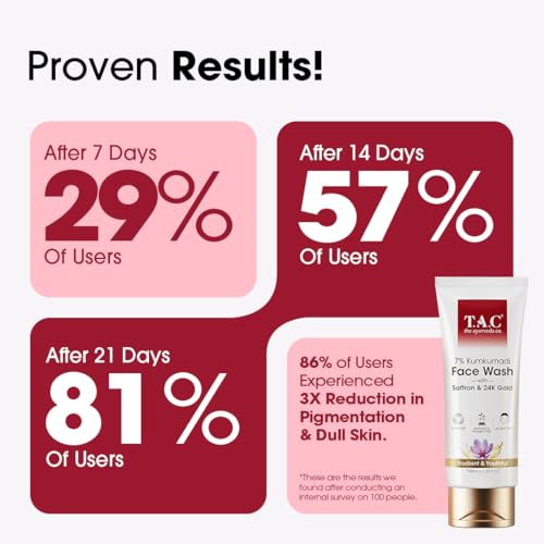 GENTLE SKIN CLEANSER: Deep cleanse dirt impurities and excess oil build-up accumulated on the skin surface with T.A.C Kumkumadi Face Wash. The mild face wash for glowing skin gently cleanses and refreshes your skin all day long