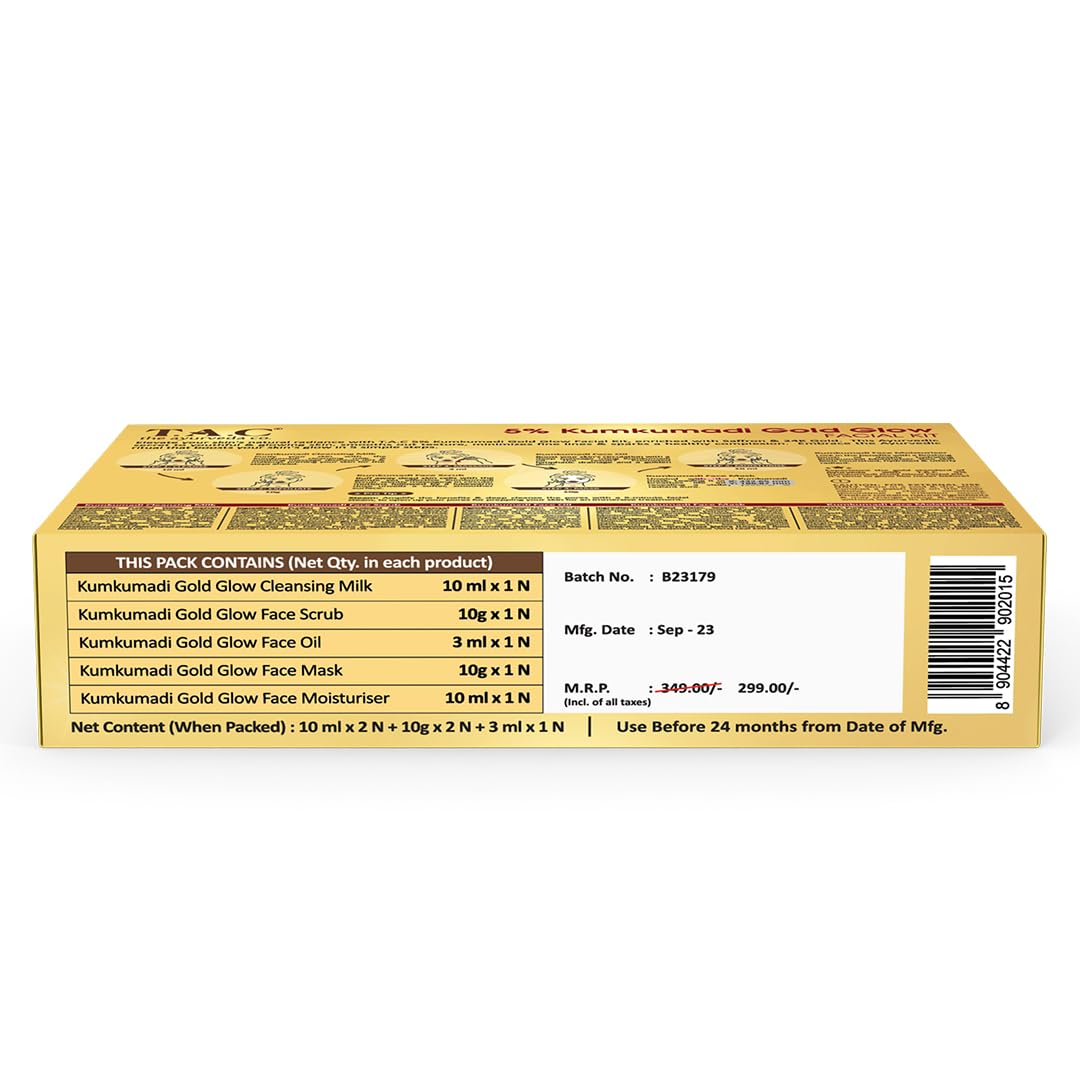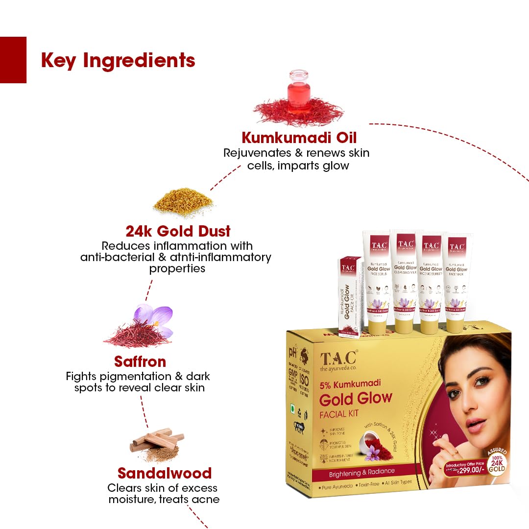 TAC Kumkumadi Gold Glow Facial Kit - Complete Face Care with Cleansing Milk Face Scrub Oil Moisturizer and Ayurvedic Mask for Women & Men - Natural Skin Glow