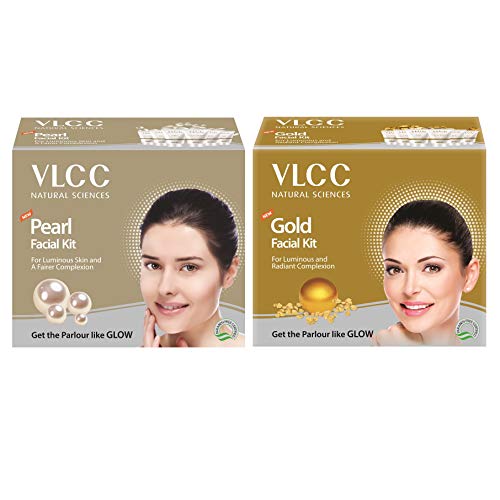 VLCC pearl facial kit: pearl the jewel of the sea is a rich reserve of calcium magnesium zinc strontium selenium and 20-22 amino acids. Pearl bhasma or ash is a natural moisturizer. It contains proteins which renew the skin cells and vitamin b complex and polysaccharides which strengthen and improve the metabolism of the skin. Harnessing the benefits of pearl bhasma and other nature actives VLCC natural sciences has curated this facial kit that promises brighter younger and radiant complexion instantly. VLCC gold facial kit: gold This precious yellow metal has been well loved by women over centuries. The anti-aging benefits of gold can be traced back 5 000 years to Cleopatra who was said to sleep in a gold face mask every night to enhance the suppleness of her complexion and preserve its natural luminosity. Recognizing its popularity and skin-enriching qualities VLCC has harnessed the best benefits of the metal to curate this luxurious facial that improves skins hydration and metabolism prevents premature aging removes pigmentation age spots lines and wrinkles boosts collagen regeneration and strengthens elastin fibres to reveal radiant luminous youthful complexion.