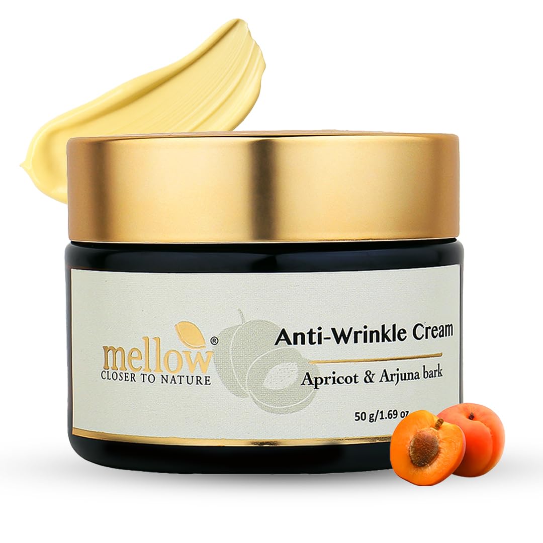 Key ingredients : Mellow's anti wrinkle cream is made with the goodness of Babachi Ark Arjuna Bark Sunflower Stack Green Apple extracts Almond oil and Apricot oil.