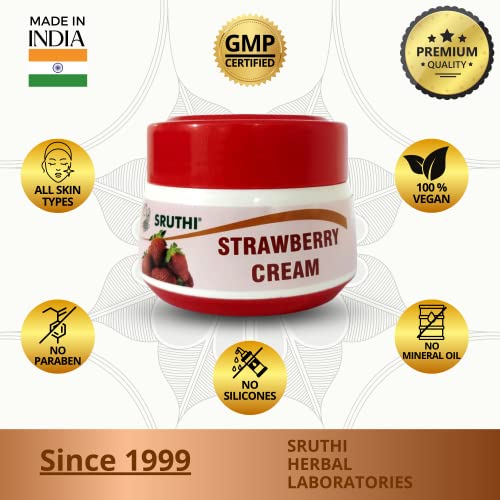 Sruthi Herbal Strawberry Cream Hydrated Skin Brightening Moisturizing Light Formula For Dark Circles & Clears Skin For Healthy Skin Face Cream- 50g