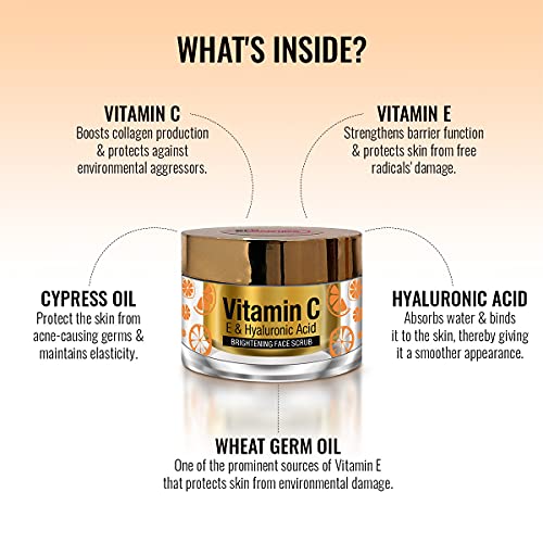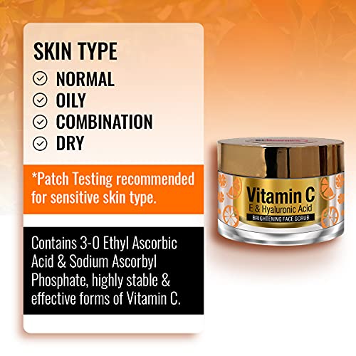 Most Stable Form of Vitamin C - Rich in antioxidants Sodium ascorbyl phosphate & 3-O-Ethyl Ascorbic Acid keeps your skin looking younger and brighter. Exfoliate Remove dead skin cells and reveal radiance with Vitamin C E Face Scrub that will leave your sk