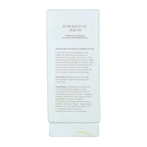 Discover the power of our Hair Revival Serum packed with the benefits of the Moroccan Argan Almond & Bhringraj. Rich in Vitamins A & E and a host of antioxidants Argan Oil is an elixir for hair that helps repair split ends making them more manageable. Bhringraj helps foster hair growth while Fenugreek seeds strengthen and moisturise the scalp keeping dandruff and flaky skin at bay. This non-greasy serum makes for a perfect leave-in conditioner.