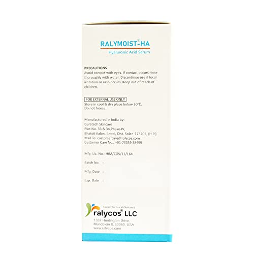 Ralymoist HA serum is a unique blend of both Low molecular & High molecular hyaluronic acid that work to Improve skin texture and brightness with intense moisture and balance. Hydrating facial serum with 100 percent pure hyaluronic acid serum formula. Proven skin lifting skincare properties fill-in and diminish the look of fine lines and wrinkles. See a noticeable difference with visibly plumper softer and smoother skin with this skin lifting hyaluronic acid serum.
