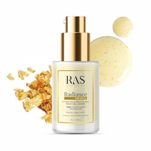 RAS Luxury Oils Radiance 24K Gold Brightening 8 in 1 Face Gel Serum Hydrates Skin & RAS Luxury Oils Solaris Daily Defence Sunscreen Combo