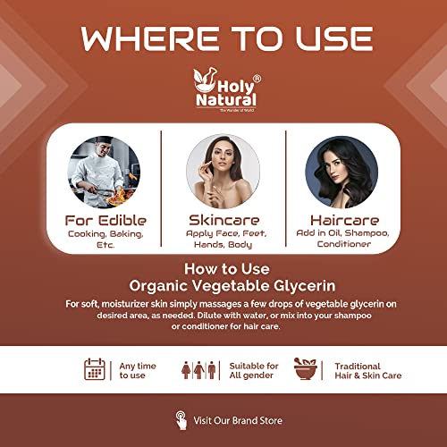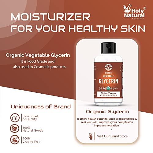 Holy Natural Organic Vegetable Glycerin (300ml) USDA Certified Vegetable Glycerin Non-GMO Kosher Food Grade/Cosmetic Grade For Skin Hair Crafts and Soap Base Oil.