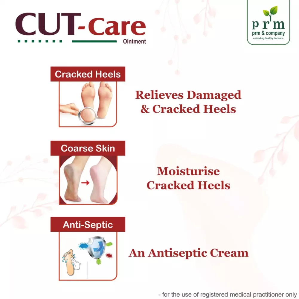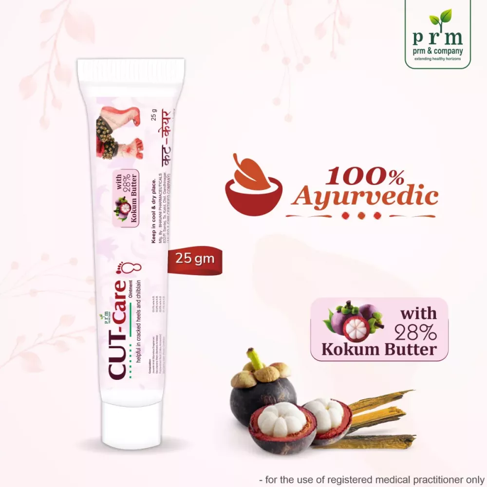 Cut care ointment is for Rough, Dry & Cracked heels. It is rich combination of 9 unique herbs like Raktpuraka, Daruharidra, Manjishtha, Sarjaras, Pashanbhed, 28% kokum butter and many more.