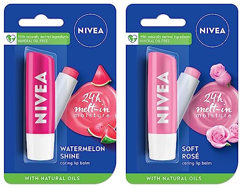 NIVEA Lip Balm Soft Rose for 24h Moisture with Natural Oils Delicate Rose Shine 4.8 gNivea lip care soft rose 4. 8 G. Nivea soft rose treat yourself to a velvety soft lip feeling with a subtle rose sheen and scent.NIVEA Lip Balm Watermelon Shine 24h Moisture with Natural Oils Pink Shine & Watermelon Aroma 4.8 gDo you want endless moisture for your lips and sheer yet brilliant colour that works day and night? Nivea fruity shine watermelon is the new exotic way to love your lips.