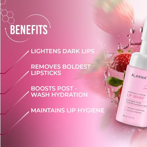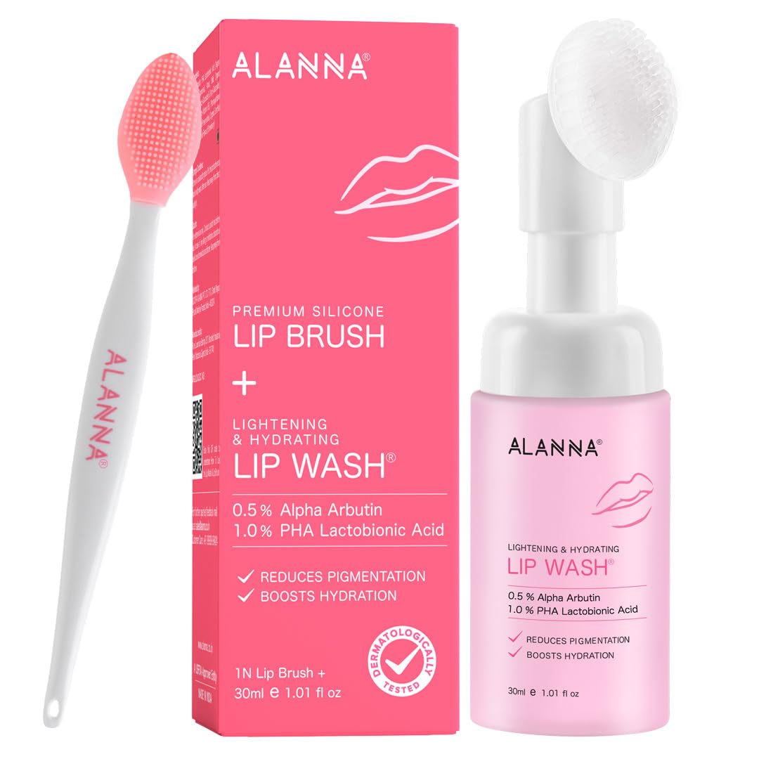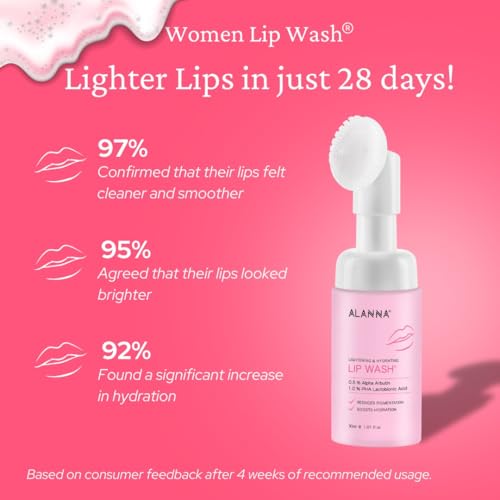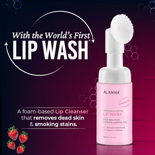 ALANNA® LipWash® Women | Lip Brightening | For Dark & Dry Pigmented Lips | 0.5% Alpha Arbutin + 1% PHA | For Smooth, Even-Toned Lips | 30ml