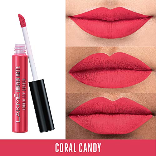 Lakme Forever Matte Liquid Lip Colour Pink Peach 5.6 mlIntroducing the new lakme forever matte lip color range - available in 20 exciting shades designed by experts this lip color has an intense matte payoff that lasts long and looks freshly applied for up to 16 hrs. These deeply pigmented shades provide your lips with long lasting colors that just don't budge whilst the color payoff is intense the texture is lightweight and very comfortable on the lips easy to apply it glides on effortlessly and stays forever fresh try the liquid mattes in 20 vibrant shades and get bold lips that look freshly applied through the day it comes with a specially designed wand to make the application precise and effortless and give you the best payoff possible how to use: 1. Start by defining your cupid's bow to get perfectly designed lips. Then move to the outer edges and get an intense look in one swipe. 2. Get the intense matte payoff that looks fresh for up to 16 hours we recommend that you try some of our exciting shades: Red velvet crimson rode coral candy nude dream pink peach pink glam nude pink purple pout wine touch enjoy the new lakme forever matte lip color rangeLakme Forever Matte Liquid Lip Colour Coral Candy 5.6 mlIntroducing the new lakme forever matte lip color range - available in 20 exciting shades designed by experts this lip color has an intense matte payoff that lasts long and looks freshly applied for up to 16 hrs. These deeply pigmented shades provide your lips with long lasting colors that just don't budge whilst the color payoff is intense the texture is lightweight and very comfortable on the lips easy to apply it glides on effortlessly and stays forever fresh try the liquid mattes in 20 vibrant shades and get bold lips that look freshly applied through the day it comes with a specially designed wand to make the application precise and effortless and give you the best payoff possible how to use: 1. Start by defining your cupid's bow to get perfectly designed lips. Then move to the outer edges and get an intense look in one swipe. 2. Get the intense matte payoff that looks fresh for up to 16 hours we recommend that you try some of our exciting shades: Red velvet crimson rode coral candy nude dream pink peach pink glam nude pink purple pout wine touch enjoy the new lakme forever matte lip color range.