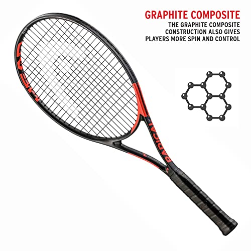 Graphite Compostie Constrcution for added control and spin Extreme grid provides better stability on off center hits a larger sweet spot and added feel Oversized Head for controlled power at moderate to full swing speed Contour Cushion for maxiumum comfort and the perfect grip