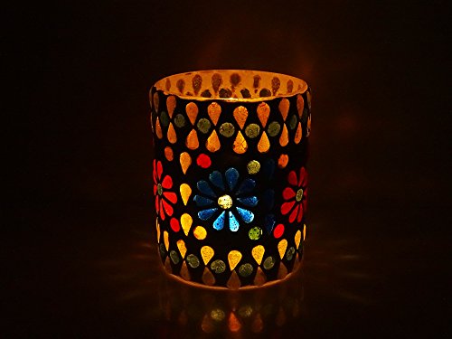 Brahmz offers you a beautiful mosaic glass tea light candleholders. These are completely hand made with small glass pieces assembled in mosaic style. Place a tea light candle inside this votive and let glow of the vibrant rays create a peaceful ambience in any room of the house