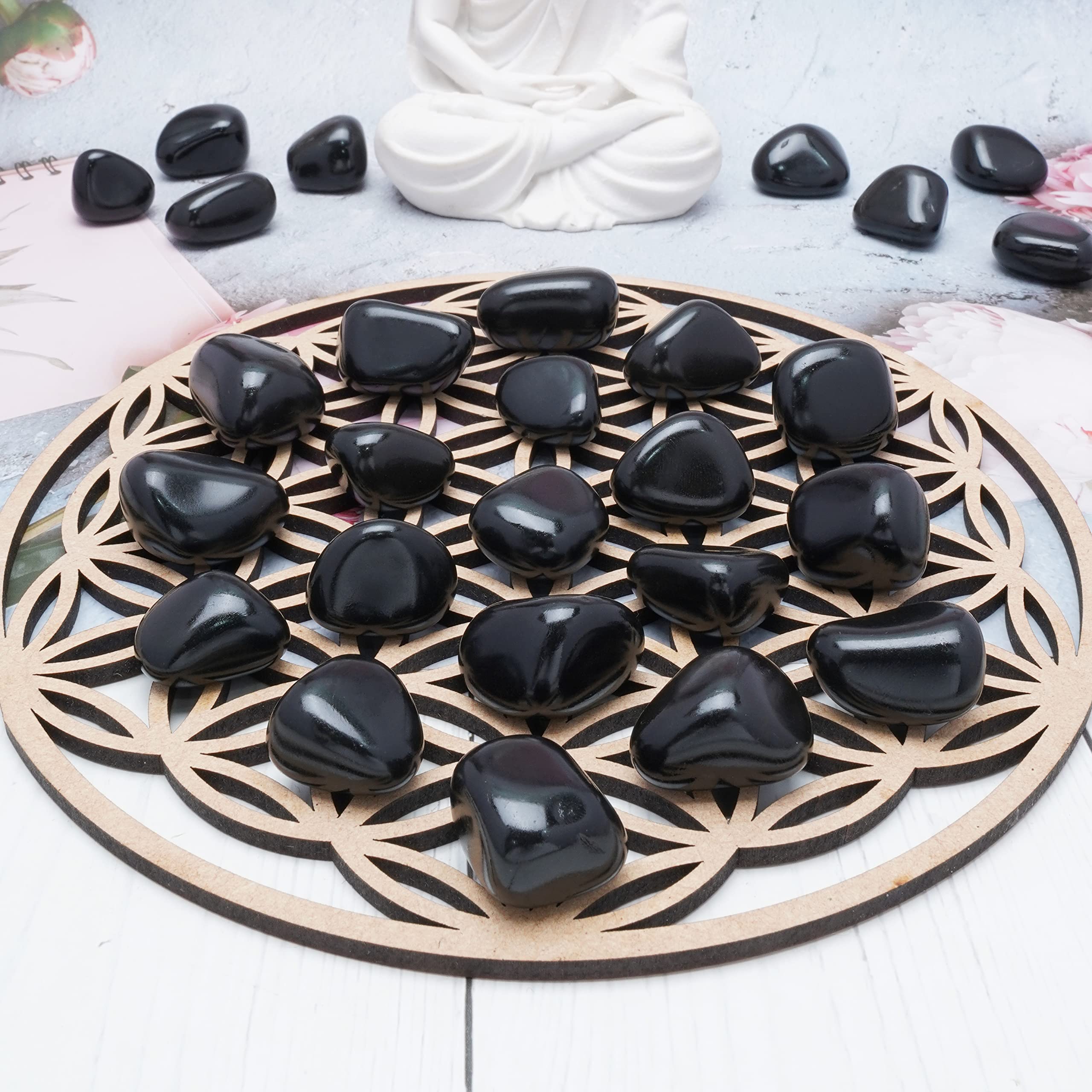 HomeHomeHome AccentDecorative AccessoriesHindCraft Black Agate Tumbled Stones - Reiki Chakra Healing - Decorative Pebbles & Vase Fillers - Tumble Stone for Jewellery Reiki Healing Vastu Correction - Home Office Decor (250 Gram) 20 mm