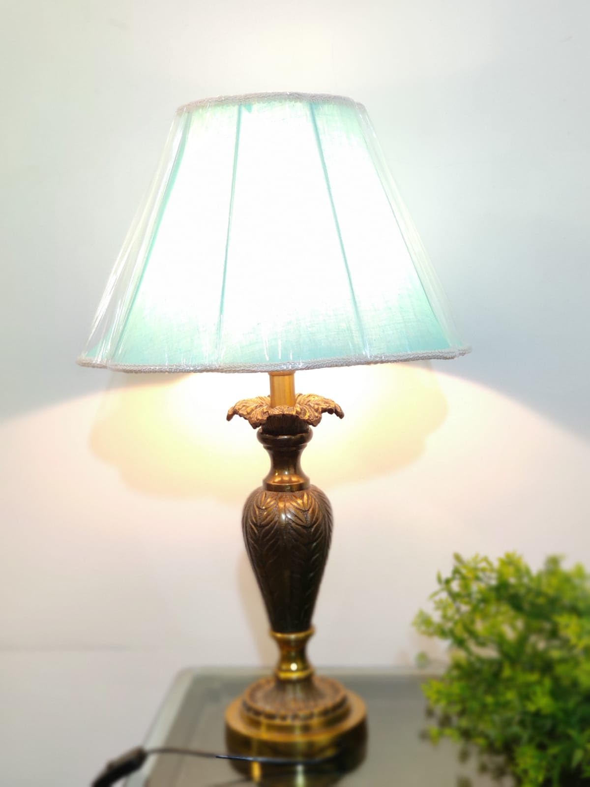 HomeHomeHome AccentLampsBRASS CRAFTS Aluminum Table Lamp Flower Antique for Living Room Bedroom Bedside Corner Night Lamp with Shade Handcrafted Made in India