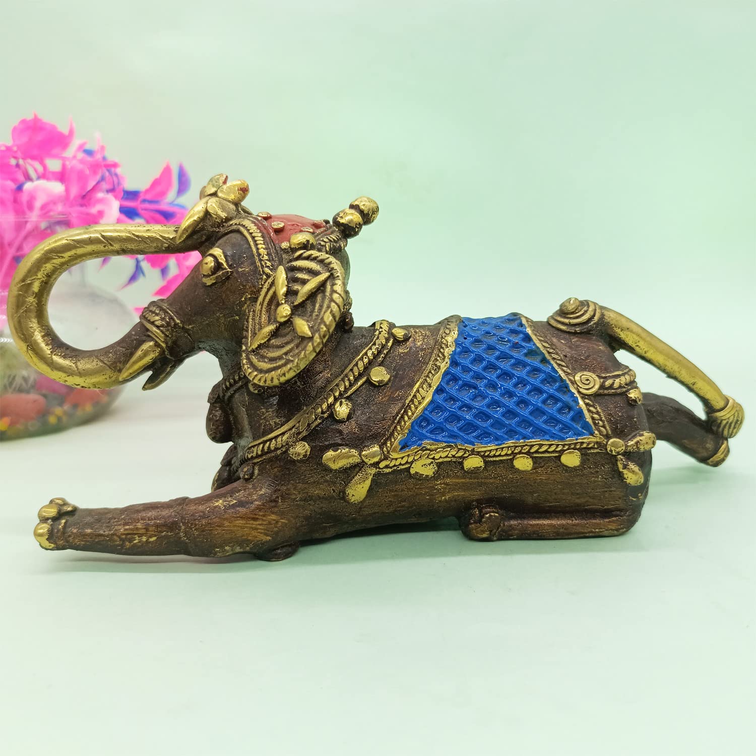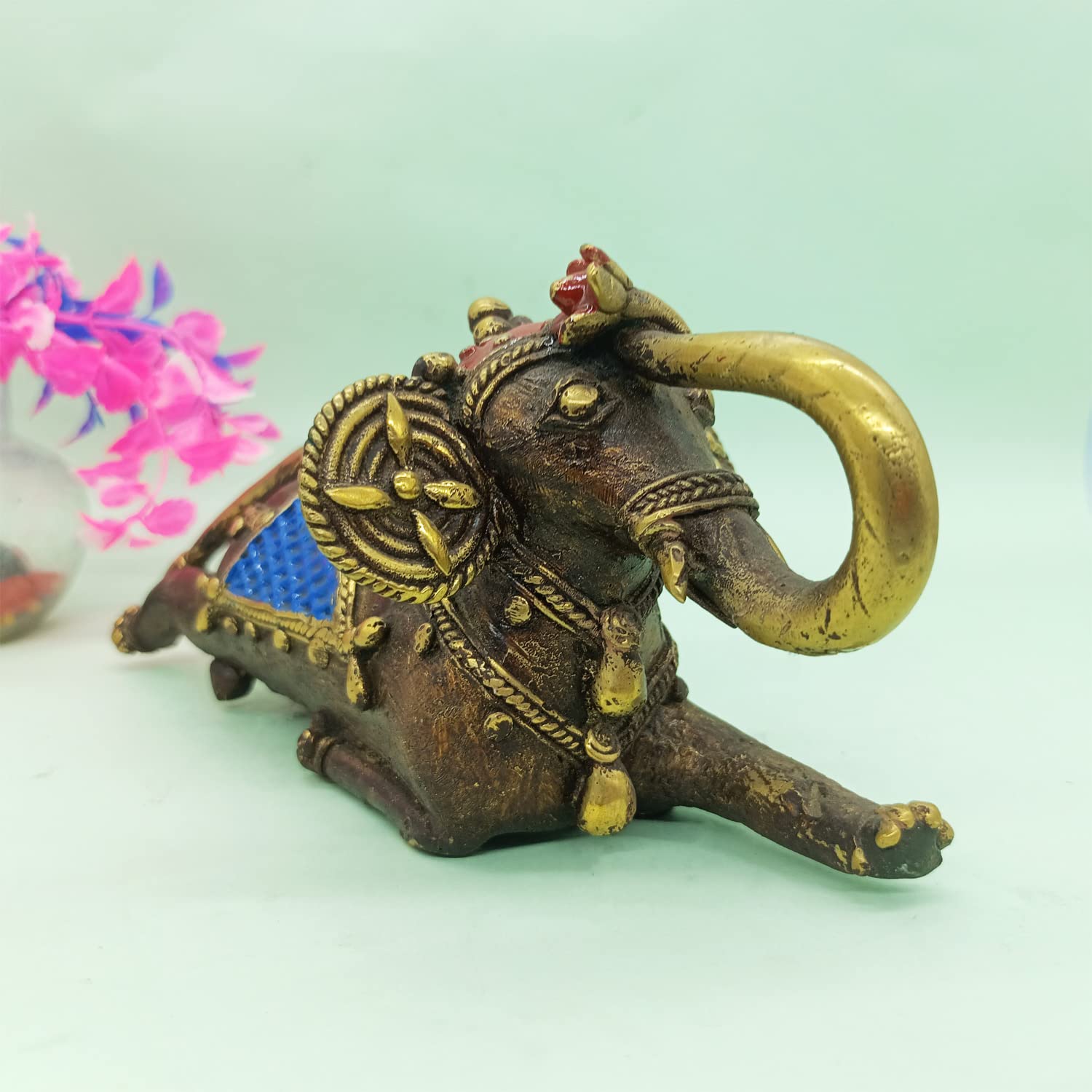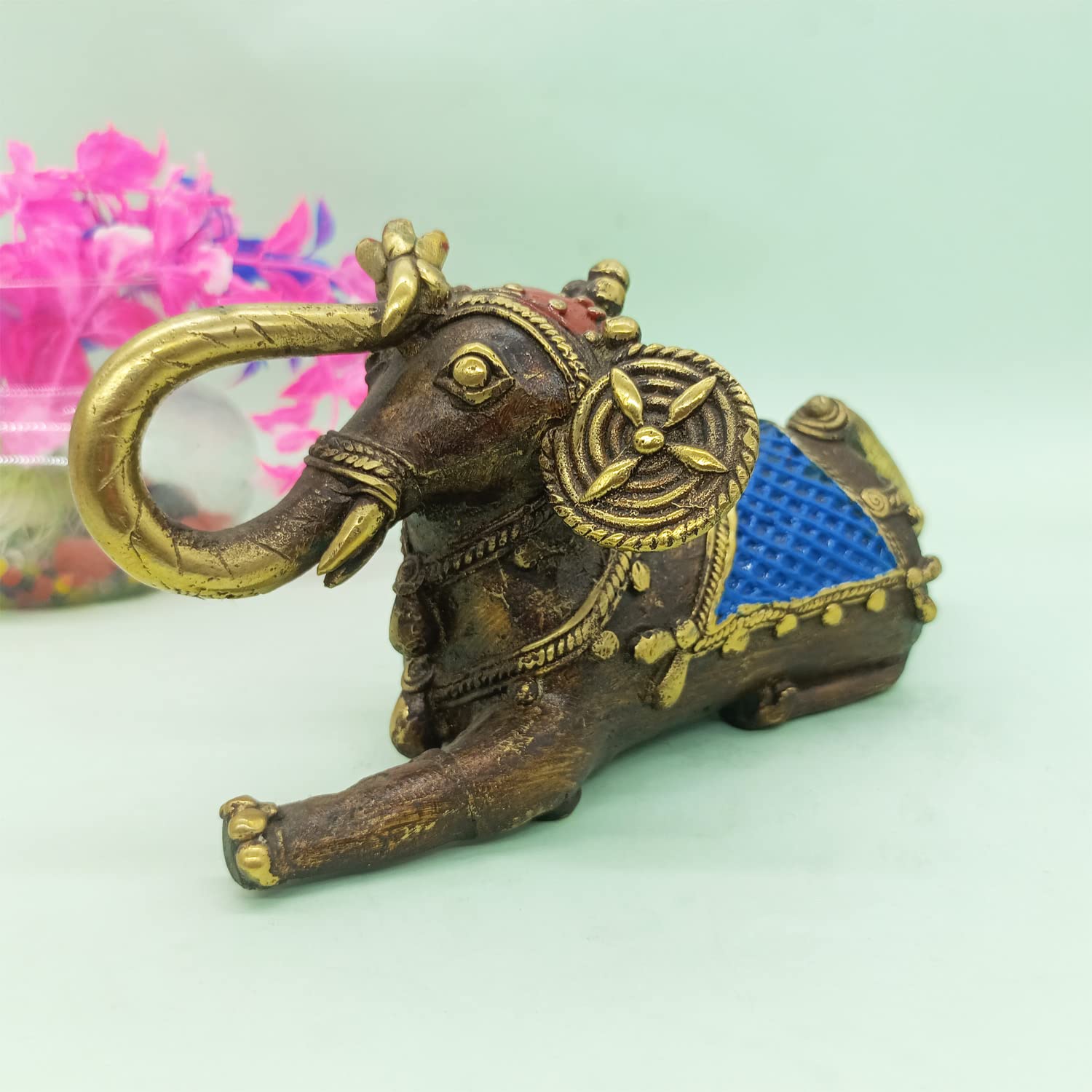 DHOKRA CRAFT brings you this decorative Tribal Elephant made of good of quality brass. Handmade Dhokra art Tribal Elephant showpiece enhance the decor value of your temple house officehotel so on. This is an Export quality premium product ensuring long life. It serves as a wonderful House warming Gift Anniversary Gift Birthday Gift and Gift for any occasion. The elephant figurine holds an important place in Hindu mythology and is often used in home dcor to symbolise power integrity and strength. Ganesha is the elephant-headed God who bestows blessings and clears obstacles. The magnificent elephant represents divine knowledge and royal power. The elephant figure has its own importance according to Feng Shui as well as Vastu Shastra. Elephants in Feng Shui symbolise power wisdom good luck and fertility. Dhokra craft is a casting technique using age-old wax casting. Hence the product might have some dull/black patches which is a symbol of handcrafted Dhokra art. Please note: Due to various types of lighting and flash used while photoshoots the colour shade of the product may vary.