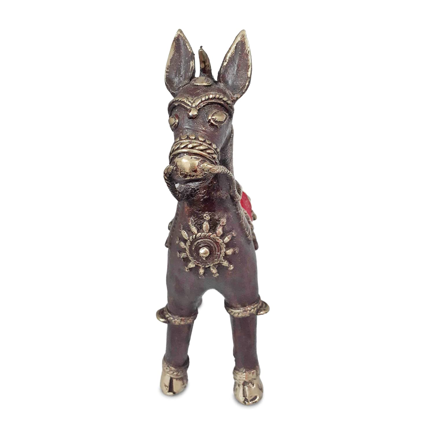 DHOKRA CRAFT brings you this decorative Tribal Horse made of good of quality brass. Handmade Dhokra art Tribal Horse showpiece enhance the decor value of your temple house office hotel so on. crafted by the tribal artists of Chhattisgarh [ Dhokra craft from Chhattisgarh ] Please note: Due to various types of lighting and flash used while photo shoots the color shade of the product may vary. The products are made of Dhokra art by the tribal artists of Chhattisgarh. Dhokra craft is a casting technique using age - old wax - casting. Hence the product might have some black/dull patches which is a symbol of handcraft Dhokra art.