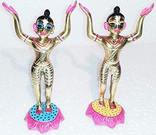 Gaura Nitai Deities or Vigraha is originally made with the Metal perfectly designed as the Original Lord Gaura Nitai who appeared in Mayapur Nadia about 500 years ago.Best for worshiping or keeping in the showcase or can give someone the best Gift ever and get the mercy of Lord Radha Krishna and get Krishna Bhakti and Krishna Prema. Anyone can worship Gaura Nitai because they do not accept offenses. But if one does very nice worship for Them They will help the devotee advance very quickly in their process of Bhakti to get Krishna Prema. If one offers Me with love and devotional a leaf a flower a fruit or water I will accept it. ~ Bhagavad Gita 9.26 Give Them some nice water every morning offer Them nice puja. (flower Incense etc) . Offer all your (pure vegetarian) food to Them. (See Deity offering sets) If you like to sew make Them some nice clothes (See Deity Dresses) in Hare Krishna Solutions Store. Offer Them a bed for rest. (See Deity Beds). Give Them your love and devotion and just see how your life becomes sublime.