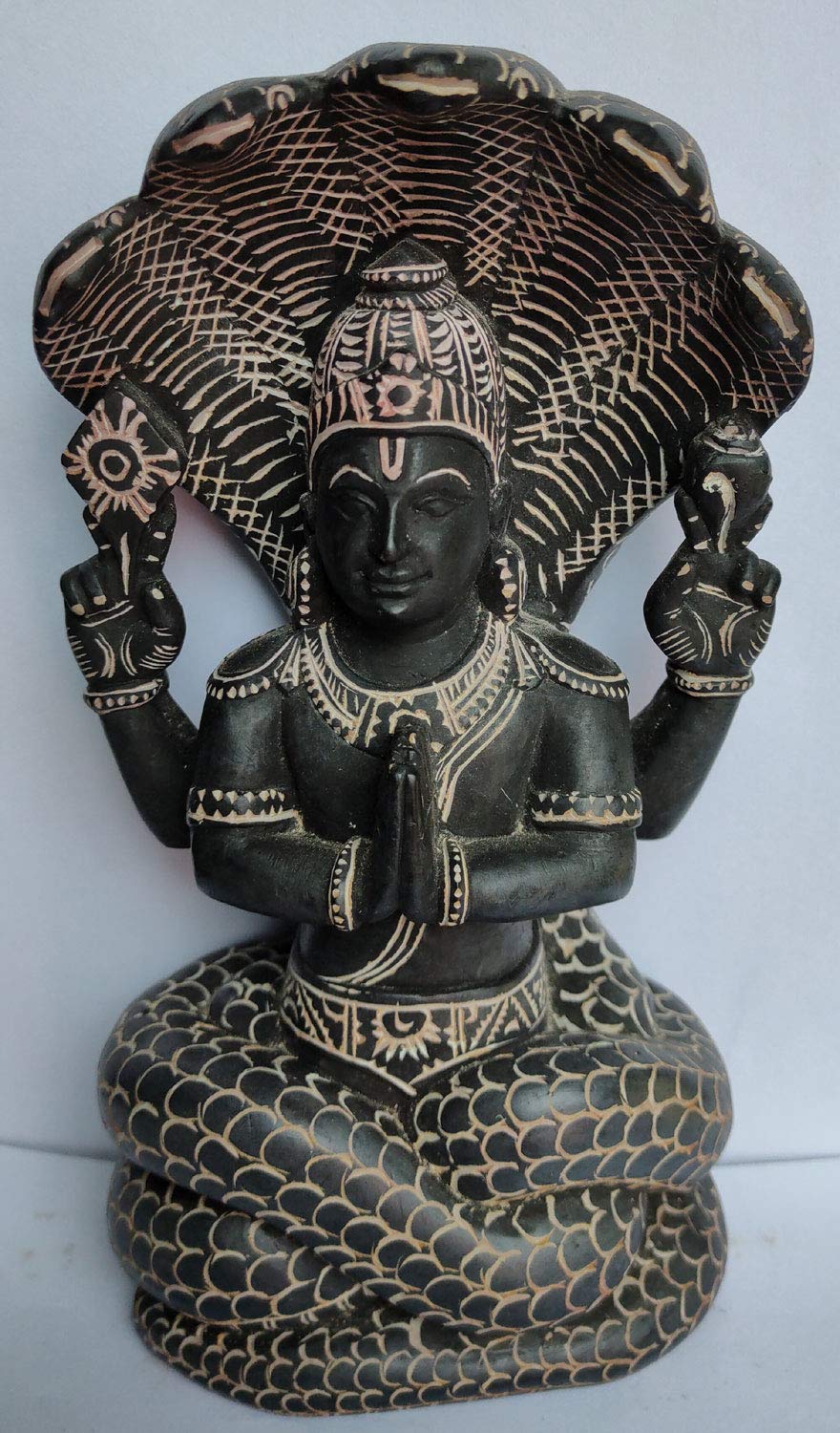 STONE WORK Give to your home the feel of serenity with this stone sculpture of Patanjali.In the Yoga tradition Patanjali's is a revered name and has been deified by many groups especially in the Shaivite bhakti tradition. It is claimed by some that Patanjali's is an incarnation of the mythical serpent Ananta. Patanjali himself is generally depicted as half human and half serpent with the human torso emerging from the coils of all-powerful serpent who is awakening in the moment of creation.Odisha soft stone used in the making of this sculpture makes your home decor more vibrant. Famous artisans of KonarkPuri in eastern India have hand crafted this statue using ancient sand casting techniques.