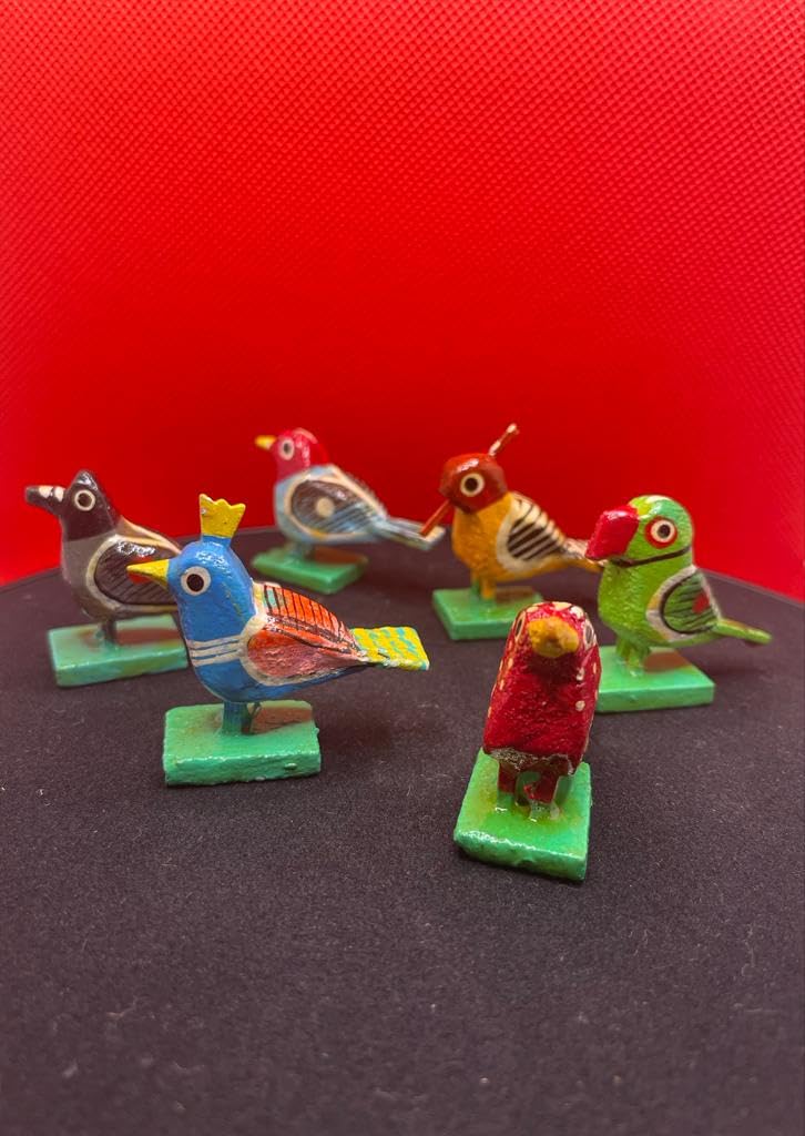 VARANASI WOODEN TOYS deals with handicrafts products across multiple categories like Home & Decor Return gifts Golu dolls wall decors etc. made in different materials like terracotta Wood Brass Jute etc. One must have a traditional showpiece for your home. One could use this wooden bird set as a nonformal gift item in the Golu Navratri festival. It can be used as a traditional showpiece. These are completely handmade. They will come in wooden bird sets of 6 pcs. ideal for kids' toys. made of very soft wood. also make elegant home decor. The set includes 6 multicolored Birds. size 2.5 inch approx. Please check the size before placing the order.