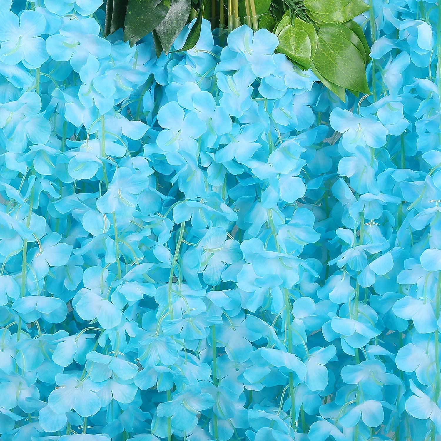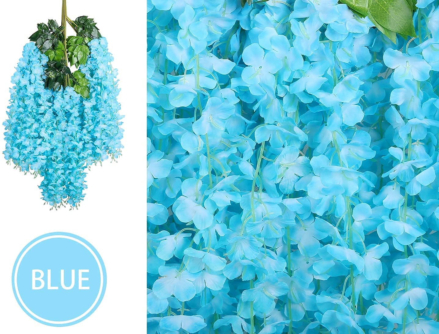 Looking for a unique way to bring the wedding festival Ganpati and pooja decor together? These hanging flowers will help to set the stage and add beauty to your wedding. The best part is that they're easy on the eyes and hard to miss as well. These wisteria-shaped hanging flowers are a great way to add pizzazz to your pooja ghar home room birthday anniversary New Year Xmas Event or Party Decorations. Perfect for ceremony sets gazebos or as centerpieces for tables these flower garlands create a modern organic vibe that's perfect for any wedding theme or color scheme. Our Wisteria Hanging Flowers are a wonderful addition to your wedding decor. They will bring a fresh floral touch to your wedding and they also create lovely centerpieces or table decorations.