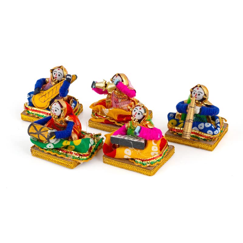 RAJASTHANI PUPPETS Recycled Material Rajasthani Musician Bawla Puppets Idol 7 x 28 cm Multicolor 5 Pieces (Female Puppets)