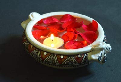 TOP QUALITY MATERIAL :Our urli made of high quality terracotta and well handmade painted Finsihed d high temperature fired .DIMENSIONS:Outer dia:8inchInner Dia:6inch Bottom :5 inchHeight:2 inch Capacity:500 ml/0.52qt (Pack of -1)