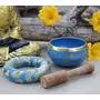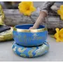 TIBETAN RITUAL CURTAIN Tibetan Meditation Om Mani Singing Bowl / Cushion / Mallet (Turquoise)