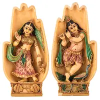 India Luxurious Collection Handcrated Poly-Resin Decorative Beautiful Hand Carved Standing Blessing Radha and Krishna Playing Basuri Sculpture I Best Showpiece for Home Decor.