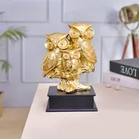 Gold Plated Resin Owl Decorative Showpiece Handmade Owl Sculpture Feng Shui Bird Owl Bird Family Figurine Uses for Living Room Garden Office Desk