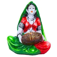 India Handcrafed Polyresin Rajasthani Lady Playing Dholak Sculpture | Showpiece for Home Decor and Office.