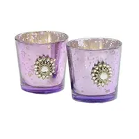 Silver Glass Votive with Jewel Brooch (Set of 2) Violet