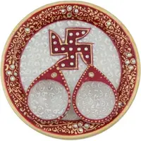 RAJASTHANI MARBLE HANDICRAFTS Decorative Kundan Studded Swastika Marble Pooja & Thali Set (3 Pieces Multicolor)