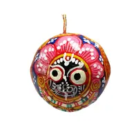WOOD CARVING WORK Puri Jagannath Door Hanging Clay Hand-Painted Ball-Shaped Hanging Emblem of Puri Lord Jagannath Balabdra and Subhadra for All Kinds of Doors and Walls Ideal for Home Temple Office