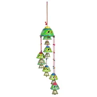Handpainted Hanging Wind Chimes for Home Decoration Rajasthani Art Design Hanging Decorative Wind Chimes with 7 Bells for Indoor Balcony Outdoor Garden (Multicolor 2 Feet Height) (Set of 2)