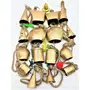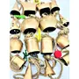 Set of 16 Shabby Chic Rustic Style Wall Hanging Bells. The golden color is actually a covering of brass. These bells are then baked in fire giving them their unique shades of brown rustic color. These cowbells have been purposely given a very rough look. Each bell has been individually handmade hence small variations are possible. Can be used for various purposes- to make Christmas wreaths wind chimes wedding decorations. Made In India Product by Finest Indian Craftsmen.