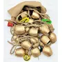 Set of 20 Shabby Chic Rustic Style Wall Hanging Bells. The golden color is actually a covering of brass. These bells are then baked in fire giving them their unique shades of brown rustic color. These cowbells have been purposely given a very rough look. Each bell has been individually handmade hence small variations are possible. Can be used for various purposes- to make Christmas wreaths wind chimes wedding decorations. Made In India Product by Finest Indian Craftsmen.