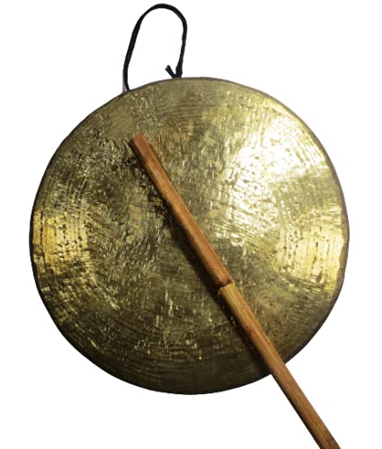 HomeHomeSpiritualBellsWOOD CARVING WORK Brass Percussion Pooja Bell/Gong Bell Ghanta with Stick for Puja Home Temple School Institute (7 inches Diameter)