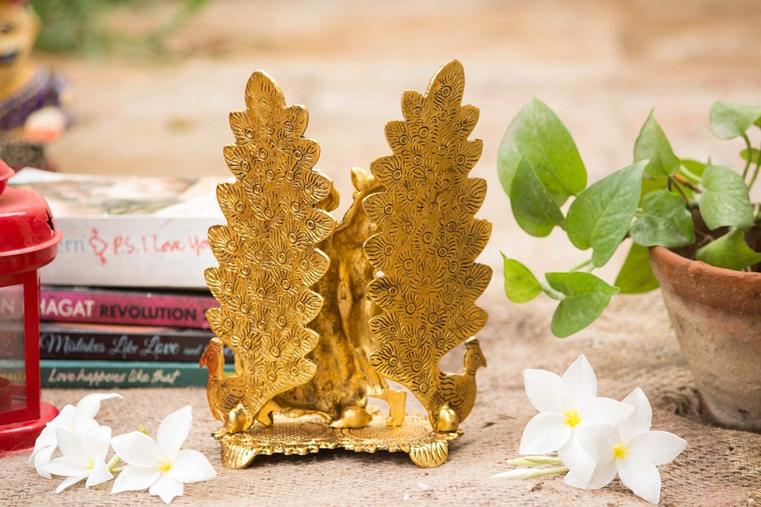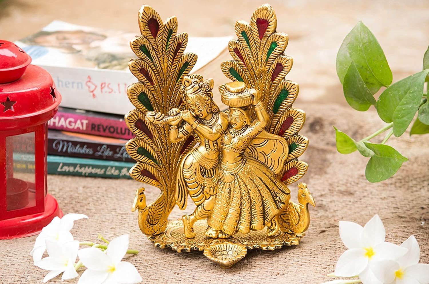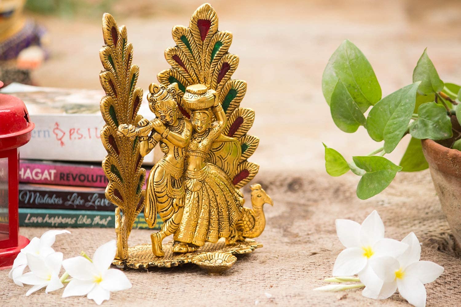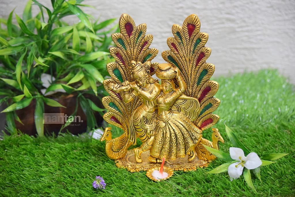 This beautiful gold plated handcrafted antique idol of Lord Krishna Radha on metal durable stand is made of pure metal. Radha and Krishna gracefully standing on arch. It is carved in beautiful design with nice finishing.The idol is Golden polished to give it alluring antique look. Bringing prosperity and happiness to your living space by keeping this Radha krishna It is also an ideal gift for several occasions such as Wedding Gifts Corporate Gifts Birthday Gifts Diwali Gifts Rakhi Gifts New Year Gifts and Compliments etc.