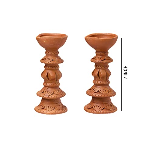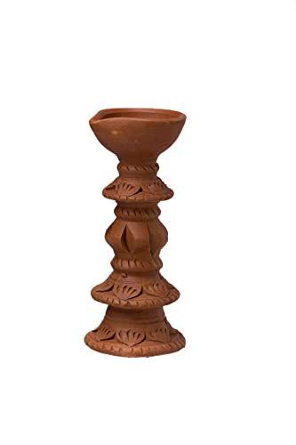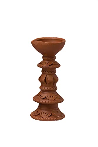 This diya will enhance your home decor and holiday festivities. Traditional handmade earthen clay diyas a splash of colour to your home. Use them instead of decorative lights to brighten your home during the festival. Made of clay natural colours no artificial colours added 100% environmentally friendly. A one-of-a-kind terracotta diya for your puja room. Handmade item with a unique design. A fantastic option for everyday use at home. The product is washable and comes in a natural terracotta colour. The design can protect the flame from the elements.