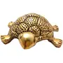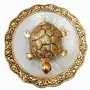 Trendy Crafts Metal Feng Shui Tortoise On Plate Showpiece (Golden Diameter: 5.5 Inch)