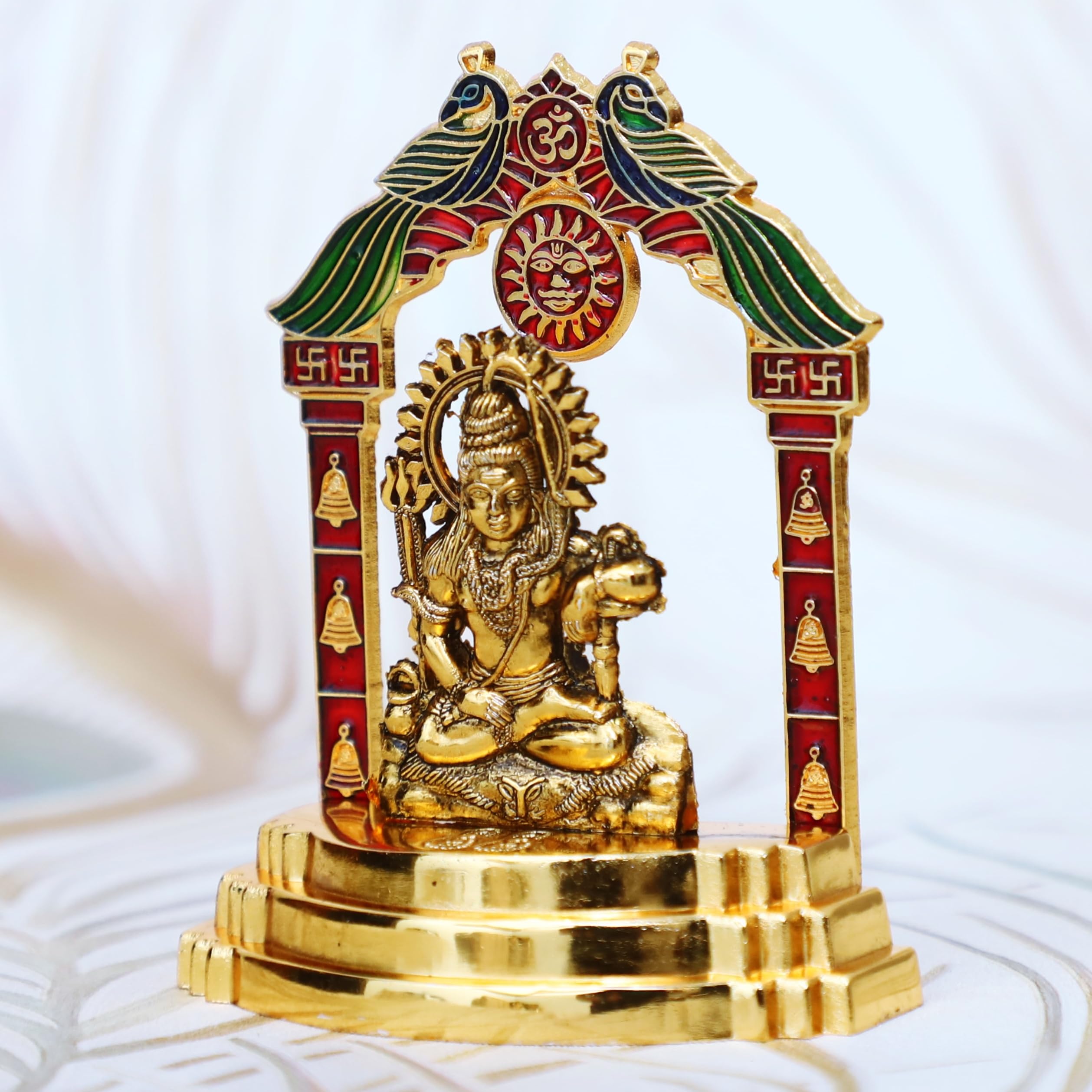 DHOKRA CRAFT Metal Golden Finish Shiva Statue. Shiva Staute is gold plated with antique finish so looks very beautiful and use for the purpose of worship and for home decorative. It's design to looks traditional stylish and inspiration from the day's of royal touch that is made in white-metal casting with silver antiques finish white metal to bring elegance to your home. This is hand made handcrafted items use it to religious worship of god&goddess. That is use and utility items & an ideals gift it to your dear once to pass on your best wishes that is an ideal gift for have House warming anniversaries birthday wedding gifts return gifts corporation gifts religious-gifts & Indian festivals. Our White Metal Gold Plated Shiva Idol is an impressive piece of art that is made from the finest-grade raw materials and intricately designed by our teams of adroit designers and craftsmen using high-end technologies.