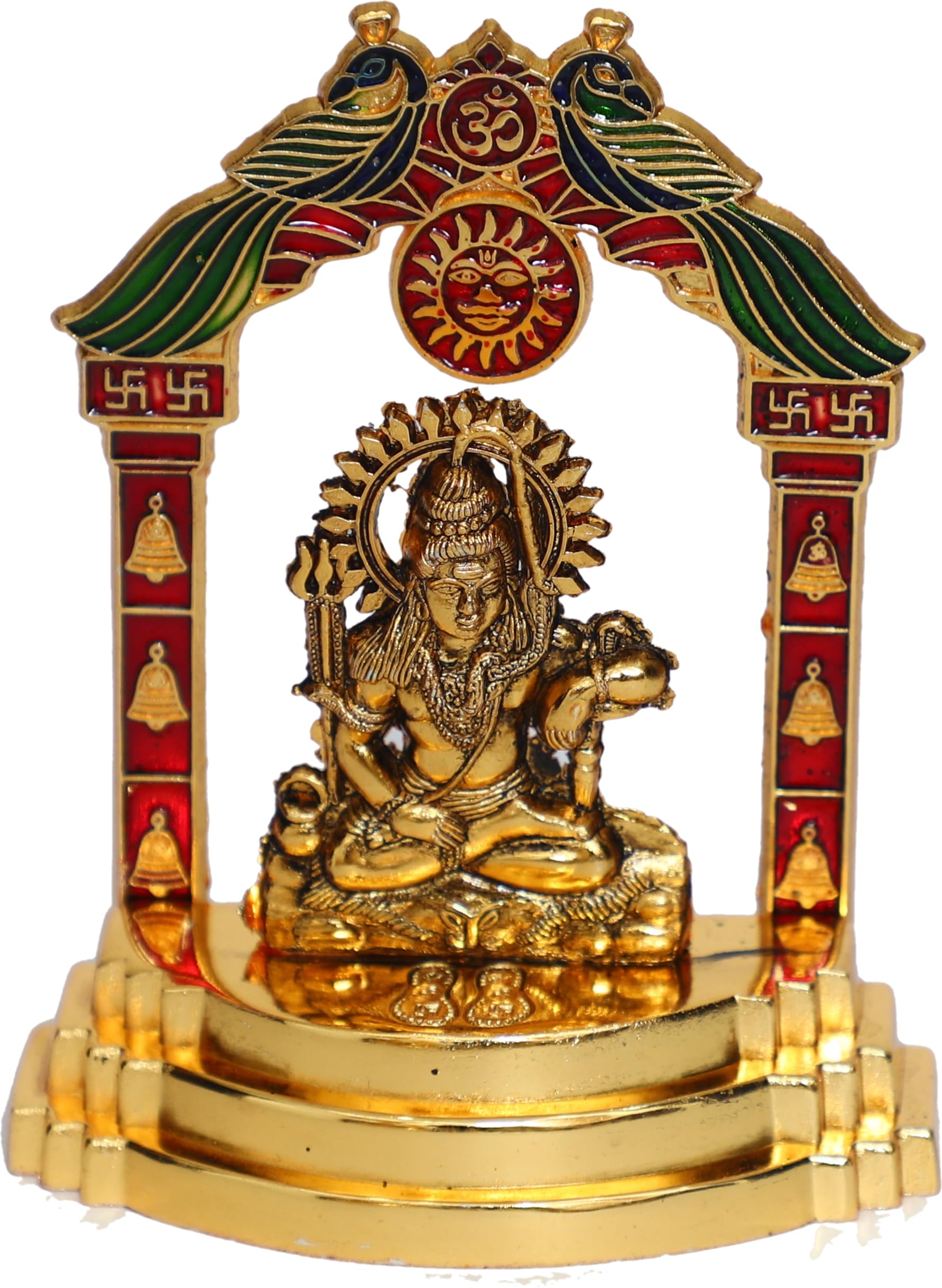 DHOKRA CRAFT Metal Golden Finish Shiva Statue. Shiva Staute is gold plated with antique finish so looks very beautiful and use for the purpose of worship and for home decorative. It's design to looks traditional stylish and inspiration from the day's of royal touch that is made in white-metal casting with silver antiques finish white metal to bring elegance to your home. This is hand made handcrafted items use it to religious worship of god&goddess. That is use and utility items & an ideals gift it to your dear once to pass on your best wishes that is an ideal gift for have House warming anniversaries birthday wedding gifts return gifts corporation gifts religious-gifts & Indian festivals. Our White Metal Gold Plated Shiva Idol is an impressive piece of art that is made from the finest-grade raw materials and intricately designed by our teams of adroit designers and craftsmen using high-end technologies.
