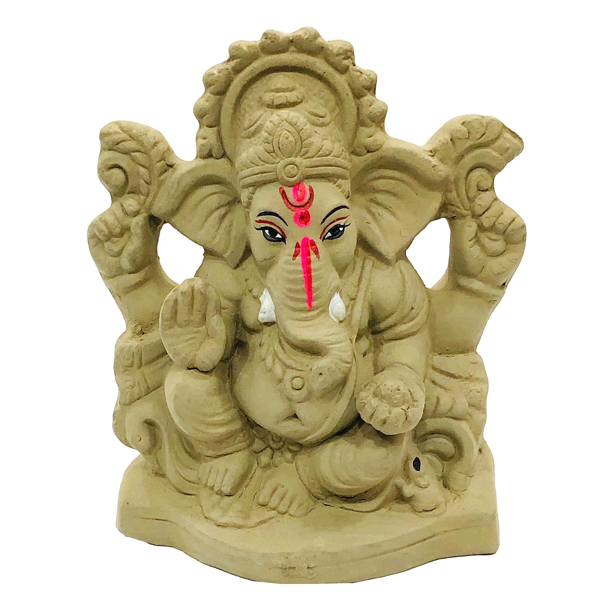 • Height : 6 Inches. ; God Ganesha Statue Made from 100% Natural Pot Clay (kachi Mitti) Water Soluble