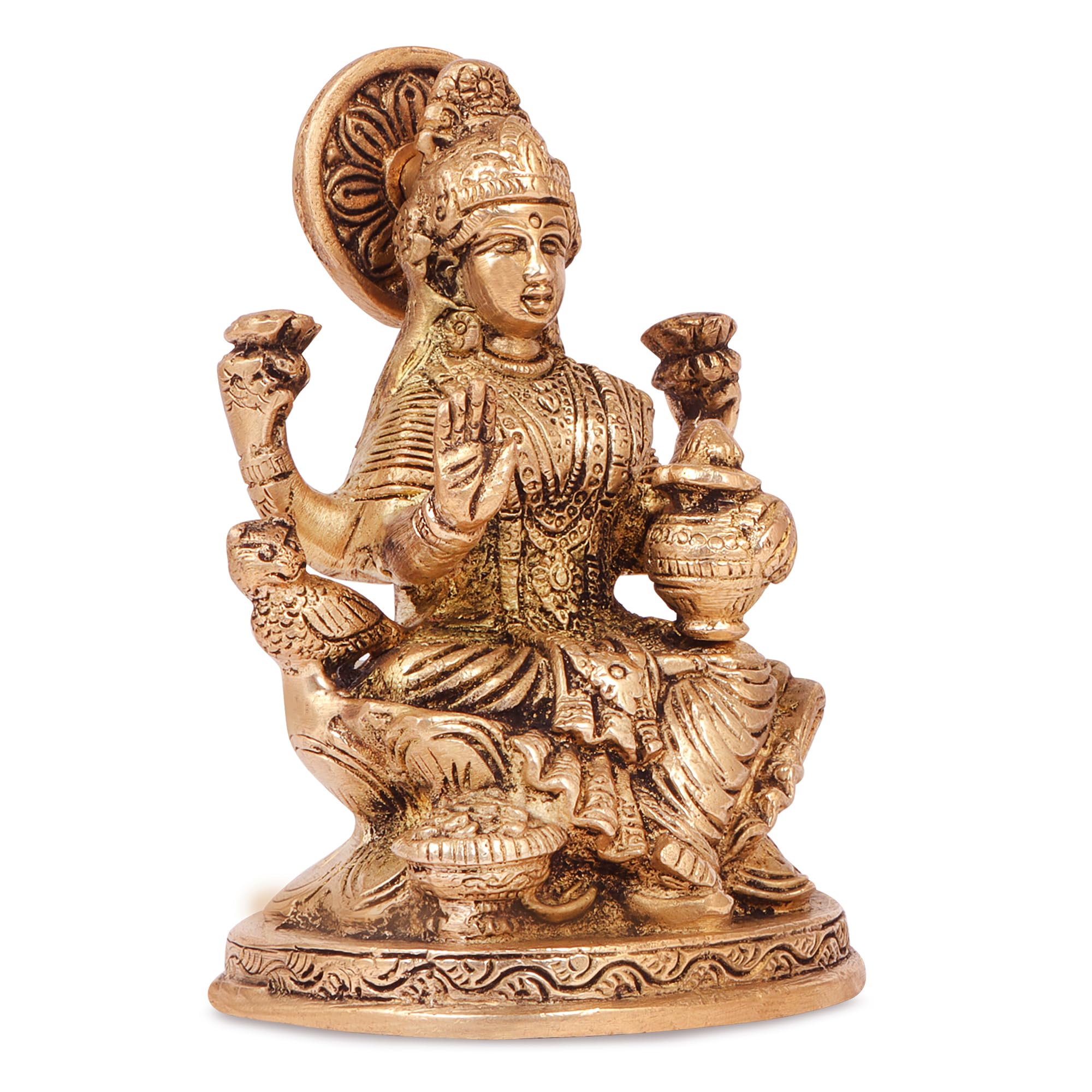 HomeHomeSpiritualIdolsKartique Laxmi Murti Brass Lakshmi Idol Laxmi Goddess Lakshmi Sitting Statue in Blessing Postures for Home Puja Mandir Temple Gold Color Height 5 Inch