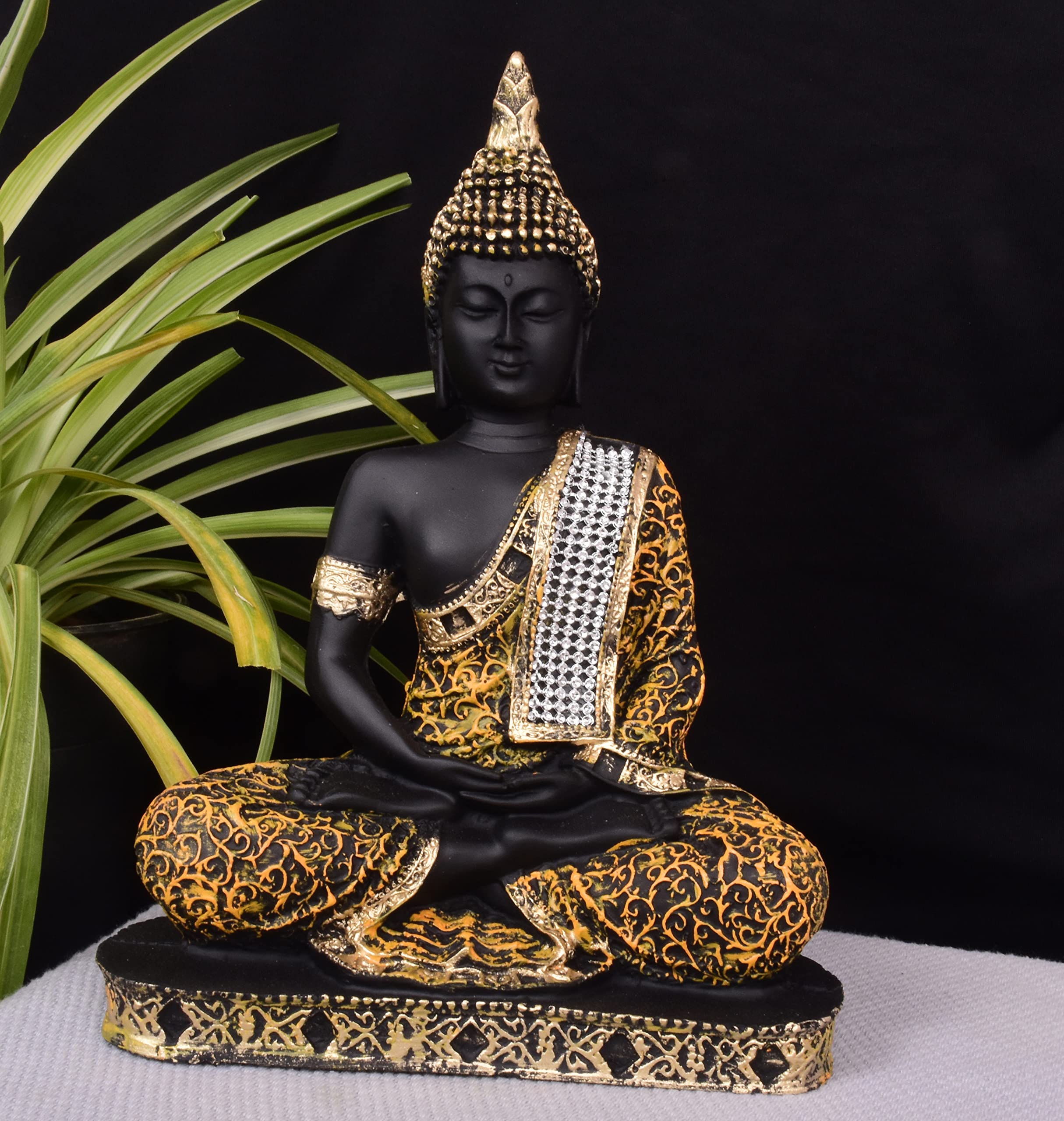 This beautiful product showpiece figurine from Mishti Enterprises is a wonderful gifting option for your best friend on her housewarming party. Ideal to keep in your room or living room in a showcase this showpiece of product in a meditating posture is made from polyresin and is handcrafted by skilled artisans using conventional buddha gold color