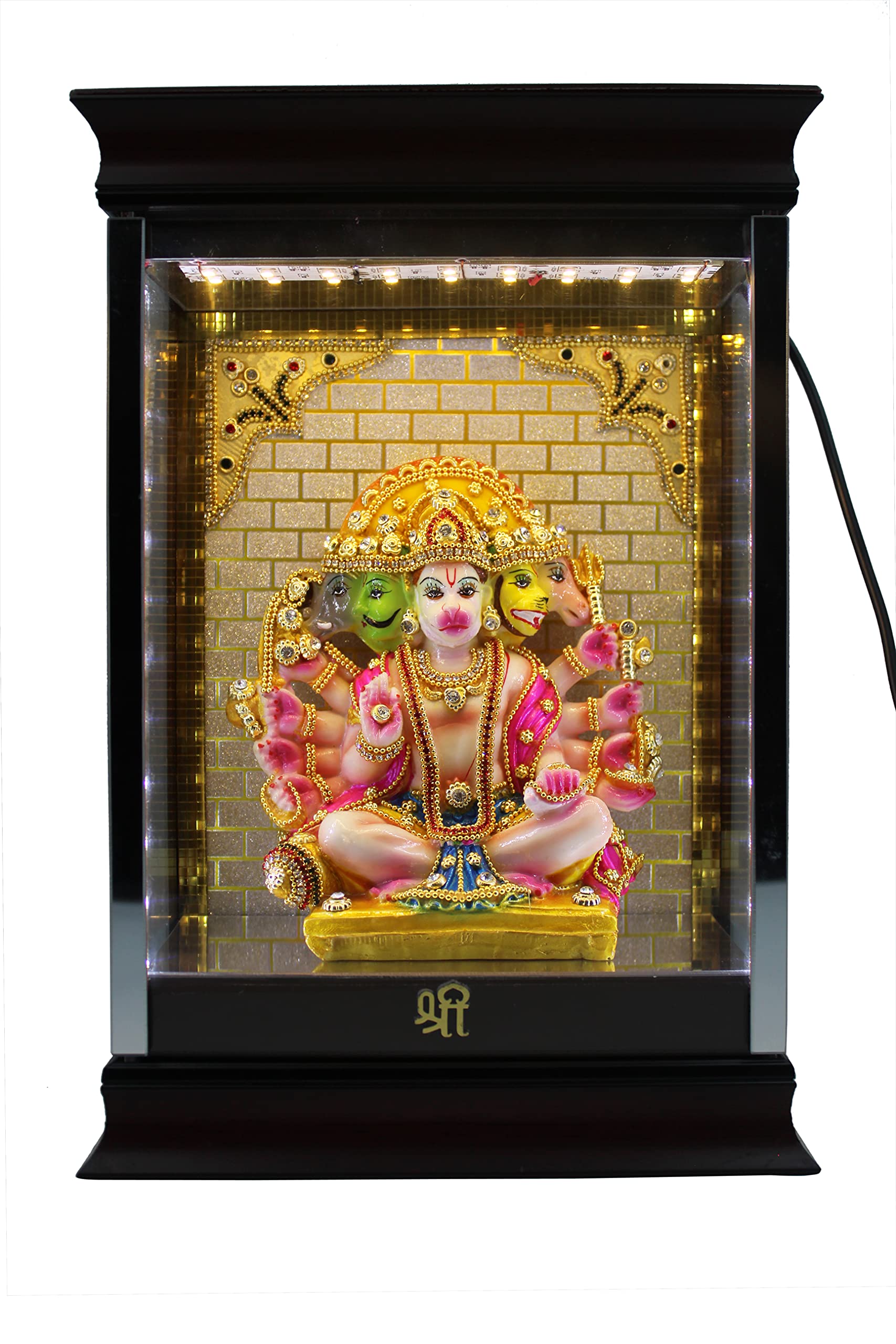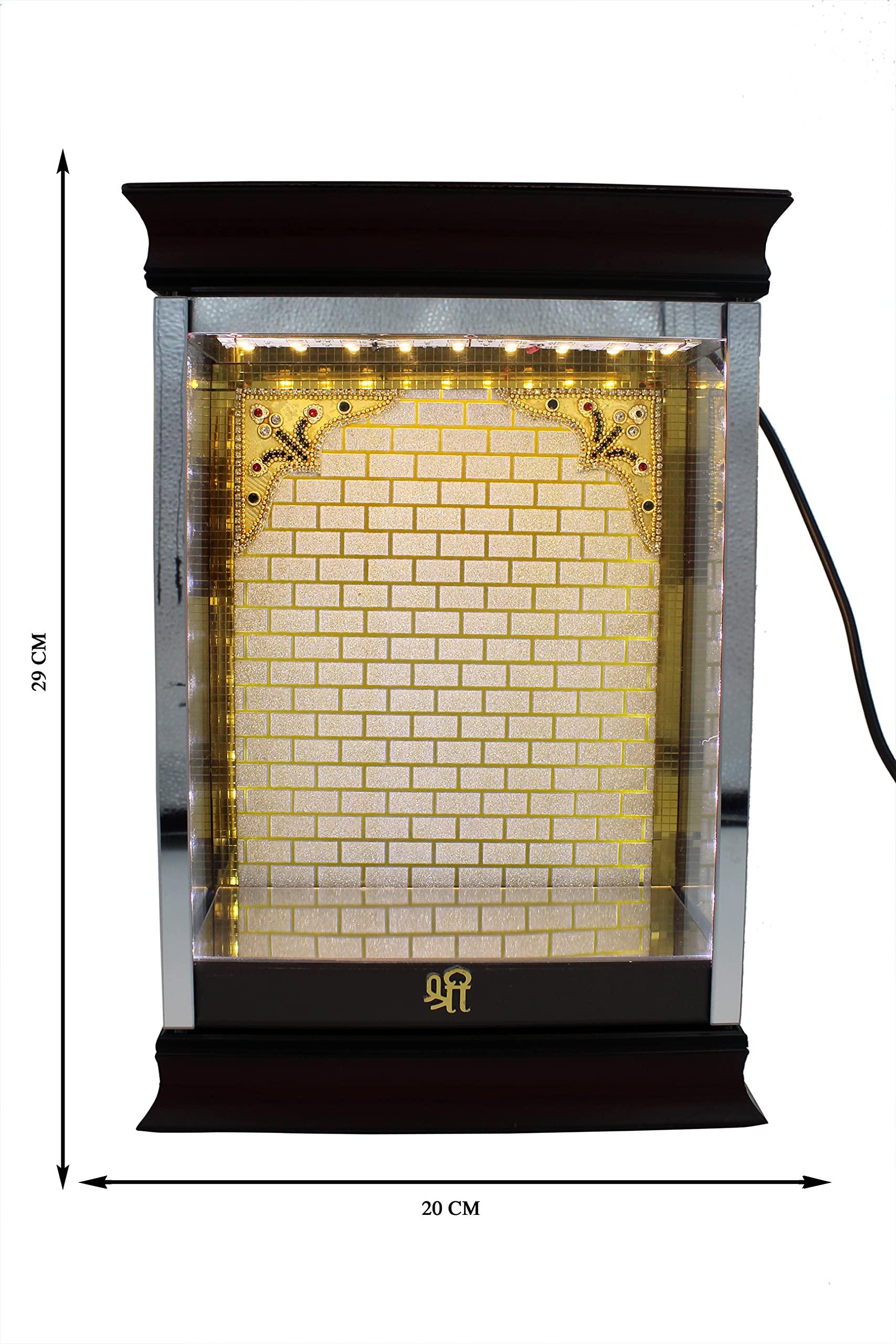 STONE WORK Presented Two In One Product One Is A Beauiful Sculpture And Second One Is A Desiner Acrylic Cabinet With Beautiful Background Graffic With Golden And White luminescent LED lights with external power supply for easy repair and replacement With 12V AC Dietachable Adaptor.This Cabinet Base material is high density water resistant sturdy boards and its unlike partical boards giving extra strength and durability above all longivityImported Acrylic Cabinet BoxCabinet Covered 3 Side With Magnificent Transparent Glass (visibility Is To Good).Its Best For Table Top Decoration In Puja RoomLiving Room Or Bed Room